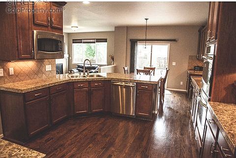 Move-in ready home in Timnath Ranch! D.R. Horton's Shavano plan features a gourmet kitchen with hardwood floors, granite counters, pantry and stainless steel appliances. Main level bedroom with 3/4 bath. 3 bedrooms plus loft upstairs including master suite with luxurious master bath and large walk-in closet. Patio, mature trees and garden beds in backyard. 3 car tandem garage. Top rated Poudre schools including Bethke Elementary! Neighborhood pool, park and clubhouse with fitness center!