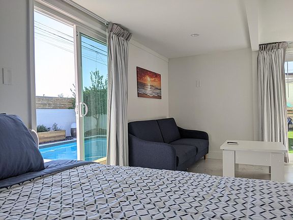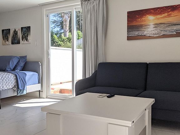 The studio comes with a fully equipped kitchen, plenty of closet space, a full bathroom, heat pump/air conditioner and access to the backyard. The unit has a queen sized bed, internet connected TV, coffee table that can be converted into a dining table for hosting a small group of guests, bed and linen and kitchenette. Washer and dryer are located a few steps away and are shared with the homeowner.