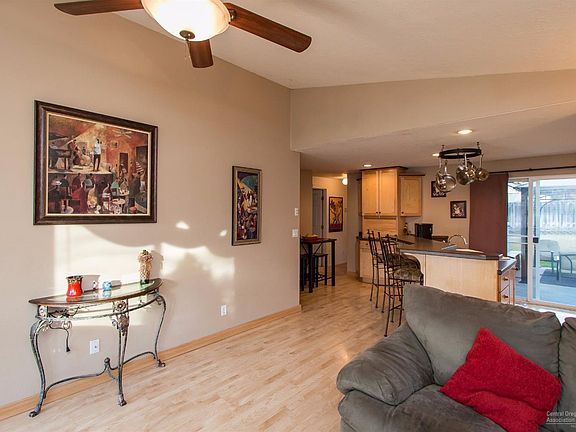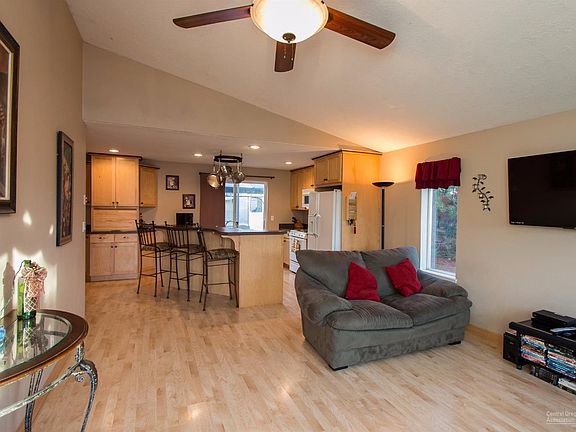 Cute single-level 3-BR home in convenient NE Bend location. Updated since home was new with laminate maple floors in great room and kitchen, maple kitchen cabinets with tons of storage, Island with breakfast bar. Vaulted living area with ceiling fan. Big back yard with plenty of room for lawn games or play is fenced and landscaped. Small RV parking area beside driveway. Greenhouse in back yard is included. New roof and exterior paint in the last 12 months. Near Sky View and Lava Ridge schools.