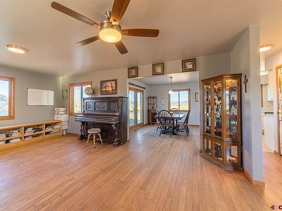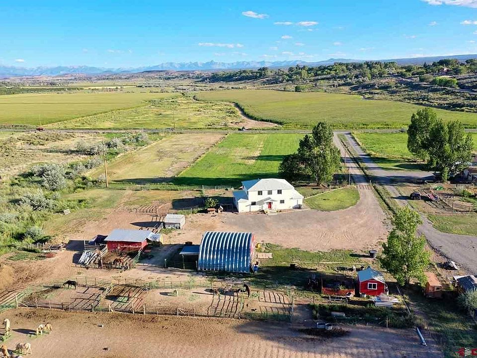 Looking for a change of lifestyle to Colorado's Western Slope? Consider this move-in ready home with property already set up for your mini-farm or for your family's 4-H projects. Large farmhouse on 10 acres minutes from town with stunning San Juan and Cimmaron views, water rights, shop, pastures, arena area, corrals, creek and no covenants! Spacious 2,416sf home with tons of windows and natural light. Main floor features a living area open to the dining room with large french door, a kitchen open to large second living area, a convenient half bath near the large laundry room plus an additional mud room. Most of the home has been recently painted and has new light fixtures. Living room and dining with hardwood floors. Bright country kitchen has newly painted white cabinets, newer stainless appliances, and an unobstructed mountain view from the window above your kitchen sink! 4 spacious bedrooms upstairs all have fantastic views in every direction. 2 full baths upstairs, both with double sinks. Plenty of storage throughout including 3 closets in the master bedroom. Home has forced air gas heat and two water heaters to service both sides of the home. Property is fully fenced and crossfenced and includes a 1200sf shop with concrete floor, electricity (220), and built-in workbench. Garden area has an insulated gardening shed with A/C unit. Irrigation water via UVWUA. HHard to find all this property has to offer!