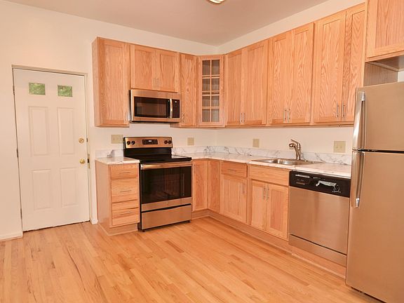 First-floor apartment located in a renovated house with a wood-burning fireplace; hardwood floors; modern kitchen with refrigerator, range, microwave, and dishwasher; spacious bathroom with whirlpool tub and separate steam shower; private washer and dryer; central air conditioning; ample storage; off-street parking available for an additional monthly fee. Resident is responsible for gas and electric.