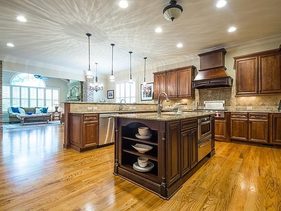 - Kitchen Features: Breakfast Bar, Cabinets Stain, View to Family Room, Stone Counters, Kitchen Island, Pantry Walk-In, Keeping Room