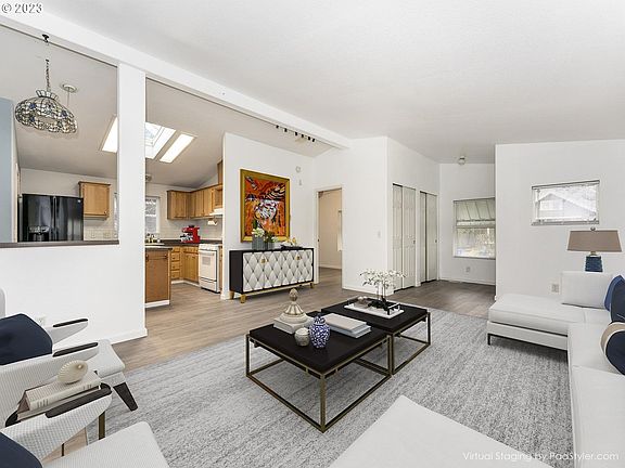 2002 manufactured home on cement foundation. 2 bedroom, 2 bath. New flooring throughout. 2nd bedroom has fold down wall bed. It comes with all appliances including washer and dryer. Large storage shed in the back. Well kept neighborhood and great location. Won't last.