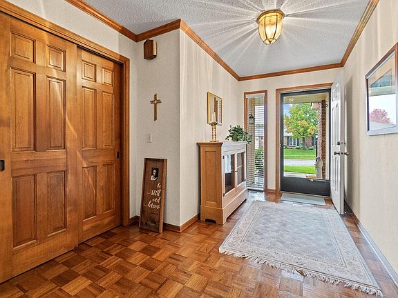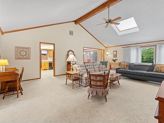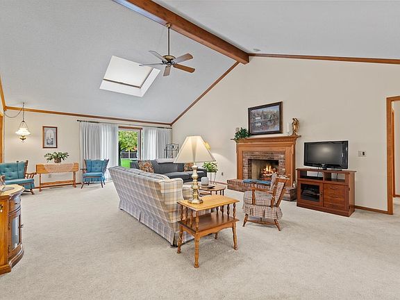 River Bend Bluffs offers 2 swimming pools and a tennis court as well as this gorgeous all-brick ranch that is bright, open and EXTREMELY well maintained. You will notice pride of ownership in the home as soon as you step into the oversized foyer with parquet flooring with crown molding. The massive great room has cathedral ceilings, skylight, ceiling fan and brick fireplace with gas log. Light pours in through the sliding glass door to the patio overlooking the well manicured backyard that looks like a small park. The kitchen has a gas range, filtered water faucet, breakfast bar and appliances included. It opens right up to the large dining area with plenty of windows. The owners suite is a great size with a huge walk in closet and attached bath. There is another full bath for bedrooms 2 and 3 with 3 currently being used as a den with built-in bookshelves, which could be built into a closet. The furnace and water heater are newer and the roof is in great shape replaced in 2007. Located in desirable Leo schools, you won't want to miss this one!