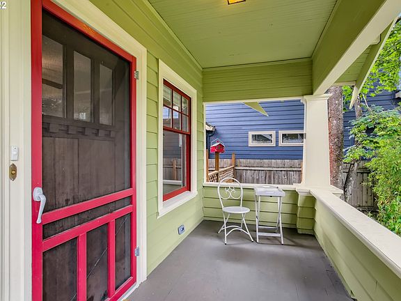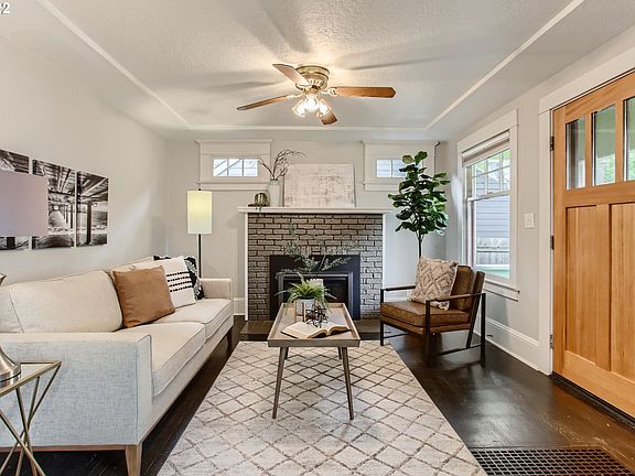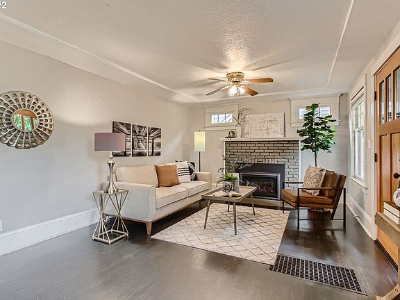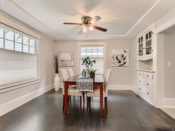 All the right updates, while still retaining the vintage charm. Inviting front porch, original wood floors, gas fireplace insert, lovely built-in dining hutch and updated kitchen with gorgeous cabinets. Sought after main floor bedroom and 2 more upstairs. Basement awaits as game room, home brewing, a TV cave or playroom. Fenced yard with patio is perfect for summer shindigs - don't miss the hops! The spacious garage with alley access offers so much potential [Home Energy Score = 4. HES Report at https://rpt.greenbuildingregistry.com/hes/OR10203000]