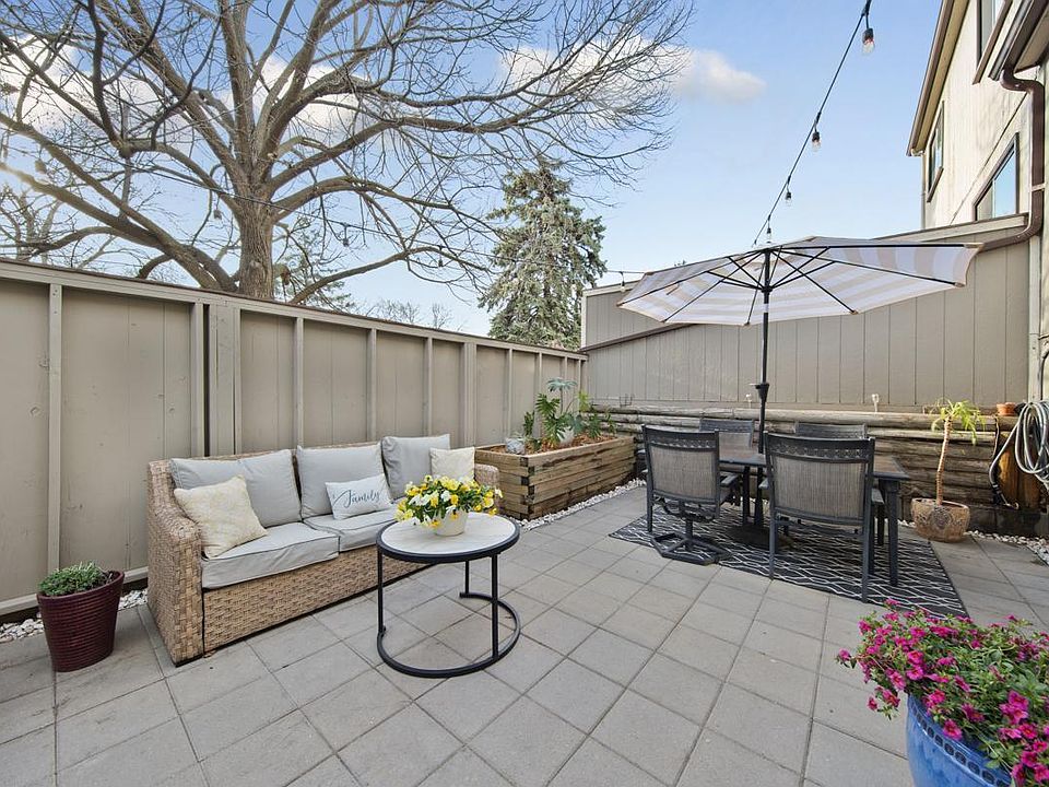 You will love coming home to your private patio, which leads you into this desirable end unit! This home features a fully renovated kitchen with quartz countertops, stainless steel appliances, and a gorgeous tile backsplash. The open flow from the living room to the dining room and kitchen makes this space perfect for entertaining. Get ready to cozy up by the wood-burning fireplace in the family room, as you gaze out the large Anderson Window. The updated flooring in the dining room, kitchen, and family room enhances this home's beauty. Both of the FULL bathrooms were designed with timeless tile work. The primary bedroom is HUGE and has tons of natural light. Two more bedrooms on the lower level, complete the space perfectly. Bonus: This unit comes with two garage spaces! Head down to the well-maintained pool and play areas. This home is just 3 blocks from LifeTimeFitness and 10 minutes from the Eden Prairie Mall or the MN River Bluff trails. Move in and enjoy!