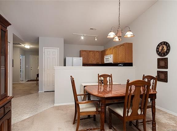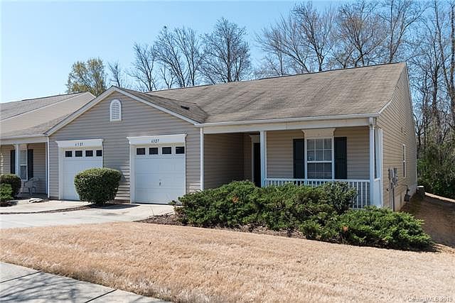 Highly sought after end unit w/ desirable stress-free living! This unit offers a patio home lifestyle - HOA covers exterior maintenance, roof, & lawn maintenance. Great curb appeal provided by low maintenance vinyl exterior, attached one car garage, covered front porch, insulated windows & doors. The inviting foyer leads to an open family room layout with vaulted ceilings, freshly painted neutral paint, gas log fireplace, & natural light. The kitchen offers ample cabinet storage and counter workspace and open views to the family room. A split bedroom layout which provides additional privacy for the large master bedroom retreat tucked away in the rear corner of the unit. Premium perimeter lot within the community with no neighbor view behind the unit. Located just minutes to Prosperity Village shopping & restaurants. Very easy access to now complete I-485 outer loop - easy to get anywhere in Charlotte. Third bedroom currently being used as an office.