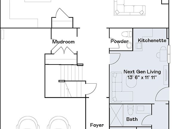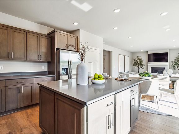 The ''Leverich'' floorplan is a two-story home designed for multigenerational living, featuring Lennar's Next Gen® suite with a separate entry, living space, bedroom, bathroom, and laundry. The main home offers an open Great Room, kitchen, and dining area with access to a patio. Upstairs are three bedrooms, including a primary suite with a private bath and walk-in closet. The home includes quartz countertops, stainless steel appliances with fridge, air conditioning, on-demand water heater, Blinds and xeriscape landscaping in front, with backyard fencing.