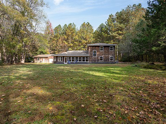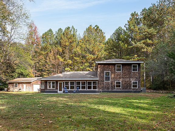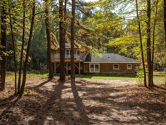 Escape to your own private retreat in this custom-built home nestled on over 11 acres bordering Mark's Creek. The moment you step inside, you'll be captivated by the incredible craftsmanship, vaulted ceilings, and exposed beams that flow throughout. The spacious kitchen features charming pine cabinets and all new SS appliances, while the separate dining room offers panoramic views of the surrounding forest. Cozy up to the wood-burning stove accented by a stunning stone wall, or entertain guests in the den with a wet bar overlooking the backyard. Heated floors provide comfort on both levels. Upstairs, the entire second floor is dedicated to an expansive master suite with a private balcony, an extra-large walk-in closet, a large vanity, and a full-size Jacuzzi. Outside, the possibilities are endless. A long driveway leads to ample parking and a detached garage. Explore the half-mile walking trail with breathtaking views, cultivate a garden, enjoy outdoor sports, or even keep animals. This hunter's and outdoorsman's paradise offers the perfect blend of seclusion and convenience, just 20 minutes from downtown Raleigh. Whether you seek a peaceful getaway from the daily grind or an investment opportunity as an event space or short-term rental, this property is a rare find. Property may be subdivided.