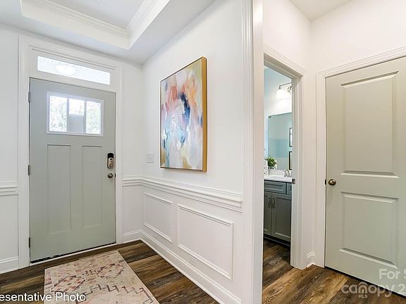 Proud to be named 2023 Builder of the Year, by the Home Building Association of Greater Charlotte! This Cary plan is an end unit with just over 1,600 square feet. The primary suite is on the main level, along with a two-story great room and kitchen/dining area. The primary bath has a double-bowl vanity & a semi-frameless shower door. All baths feature quartz counters. The beautiful kitchen has upgraded cabinets and granite counters, a ceramic tile backsplash, and stainless appliances, including a gas range. Beautiful and durable Enhanced Vinyl Plank flooring runs throughout the main living areas. The upper floor has two bedrooms, a loft, and an unfinished storage room/bonus room. This home has a covered rear porch and a privacy fence between rear yards. Pool & Cabana, Dog park, playground, & paved walking trail now open!
