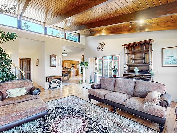 Amazing VIEWS & situated on a picturesque 1-acre lot, this stunning property offers 4 beds, 4 baths & approx 4101 finished sqft of living space. As you step inside, you'll immediately notice the meticulous attention to detail & pride of ownership that radiates throughout. The main level features a floor plan that seamlessly blends functionality with style. The gourmet kitchen, thoughtfully designed for entertaining, showcases beautiful knotty alder cabinetry, custom slab granite countertops w/breakfast seating, large walk-in pantry w/ cedar accents, & exquisite travertine tile flooring & columns. The great room is a true showstopper w/ its vaulted ceilings, wood-burning fireplace w/ stone surround, & floor-to-ceiling windows that frame breathtaking views of the mountains & red rock formations, including Dawsons Butte. The loft space room offers versatility as a home office, playroom, or cozy sitting area flooded w/ natural light from windows on all 4 walls. Descending a few steps from the main level, you'll discover the primary suite featuring a large walk-in closet, floor-to-ceiling windows overlooking the private yard & an updated en-suite bathroom complete w/ a spacious walk-in shower, soaking tub w/skylights, & elegant travertine finishes. An additional bedroom, full bath, & hall closet storage complete this level. The lower levels of the home offer two add'l bedrooms, a beautiful family room w/ a second wood-burning fireplace & stone surround, & tranquil sunroom/healing room accessible from the exterior, providing a serene retreat for relaxation & rejuvenation. Outdoor enthusiasts will delight in the over 900 sqft of outdoor living spaces. Whether you prefer lounging on the refinished redwood deck or on the covered concrete patio, enjoying the raised patio or tending to the courtyard garden, there's something for everyone to enjoy in this outdoor oasis. Secluded but not isolated, this remarkable home is only 20 mins to Castle Rock & 40 min to DTC or CO Springs.