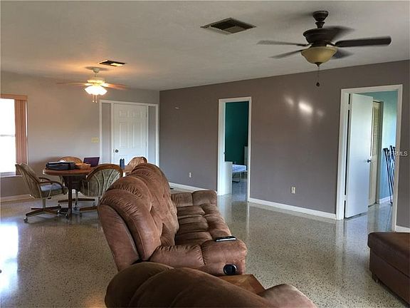 AWC - Taking Backup Offers Beautiful WATERFRONT home in Spring Hill, on a huge lot on Hunter's Lake. This move-in ready home features 3 bedrooms, 2 baths, and a 1 car garage. The owner had the original Terrazzo floors fully restored, they run throughout the home, no carpet! Combined with the high ceilings and open floor plan the living areas have a dramatic, modern look. The kitchen features stainless appliances, a breakfast bar, and a large closet pantry. Perfect layout for entertaining; there is a fully enclosed Florida room off the family room through a wall of sliders. The Florida room opens to the huge back yard, overlooking the lake and island behind the home - hop in the boat right in your back yard and just a short trip around the island to open lake water. The garage is wide and deep, plenty of room for a car or even a smaller boat and trailer. The master bedroom includes double closets on the way to the master bath. The 2 guest bedrooms are oversized and include large closets and a shared jack and jill bathroom with another tub. This home has 130 ft of waterfront on Hunter's Lake, the only powerboat-accessible lake in Hernando County, it is well known for excellent bass fishing, and there is a public boat ramp nearby for launching your craft. The roof is only 2 years old, the AC was completely serviced last year with new motor and compressor booster, and the front windows were updated with vinyl double hung windows as well. No flood insurance required! This home is a must see!!!!