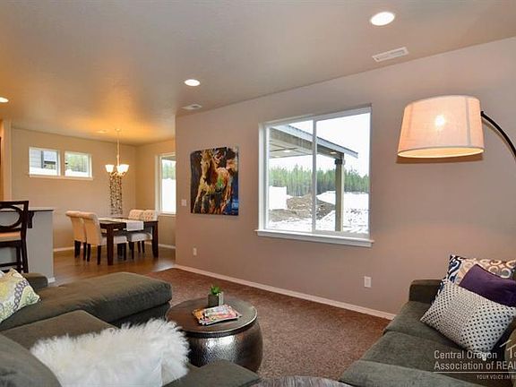 New NW Bend community close to parks, hiking trails, & the Deschutes River. Open concept living with large master bedroom. Features include 4' garage extension, covered patio, hardwood kitchen/dining floors, full wood wrapped windows with 4' trim, Quartz countertops in kitchen, full lap siding, masonry accents with wrapped columns, and gutters. Pics of similar hm.