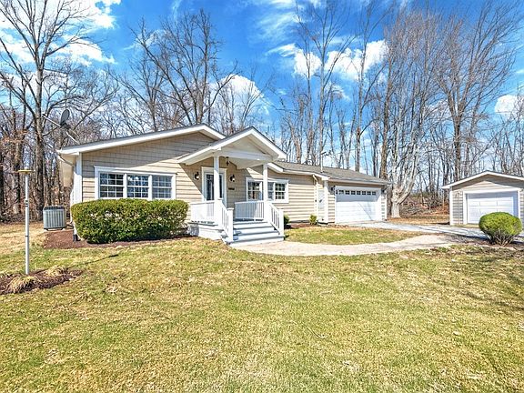 Welcome home to this beautifully updated 3-bedroom ranch on a spacious 1-acre lot. Enjoy brand-new hardwood floors, new lighting fixtures, and fresh, neutral paint throughout. The kitchen features new appliances, white cabinets, and granite countertops ideal for everyday living or entertaining. The fully renovated bathroom includes stylish finishes, a newly tiled shower, and a dual vanity for added convenience. This home offers a convenient 2-car attached garage, plus an extra 1-car detached garage for additional parking and storage. Don't miss out on this move-in ready home that blends comfort with style. Owner/Agent