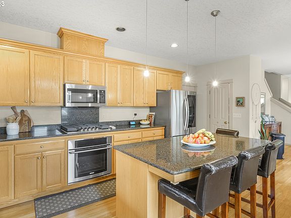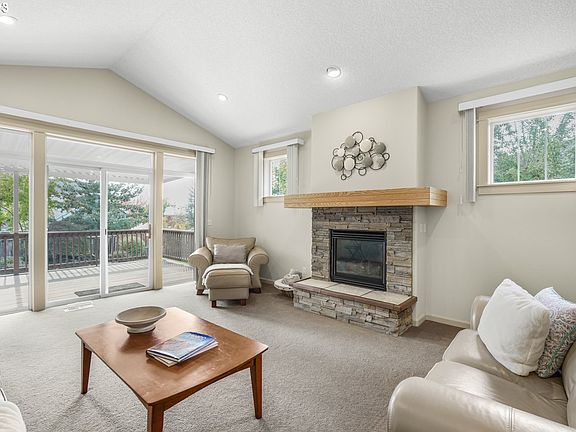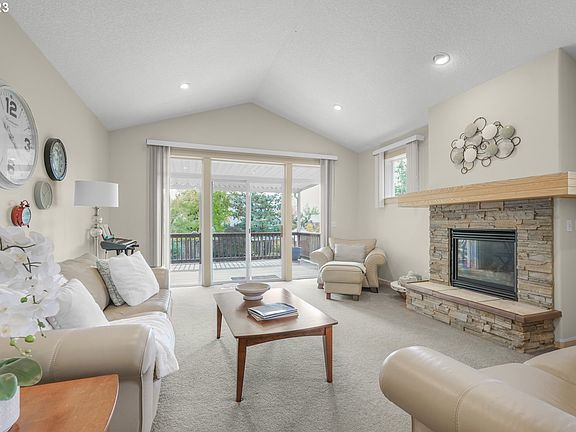 Stunning home in Golden Leaf Estates! This property is on a spacious .35-acre lot. The meticulously landscaped grounds provide an inviting and tranquil environment. The bright and airy living room features vaulted ceilings, a cozy gas fireplace, and sliding glass doors that lead to a large deck. The kitchen has stainless steel appliances, beautiful cabinetry, and elegant granite countertops. An island provides additional space for meal preparation. The primary bedroom on the main floor is generously sized with vaulted ceilings, and sliding doors that open to the deck. It also offers a walk-in closet and a luxurious private bath, complete with a jetted tub and double sinks. An additional bedroom, a convenient laundry room, and a half bath round out the main floor, ensuring comfort and convenience. Upstairs, you'll find a spacious loft that can serve as a family room or a versatile space to suit your needs. Two more bedrooms and a full bath make this level perfect for accommodating family and guests. This home also features an office space upstairs, ideal for those who work from home or need a quiet area for study. The backyard is private, fully fenced and shaded by mature apple and plum trees that are 130 years old and the fruits are organic. A relaxing water feature adds to the serene ambiance, making it the perfect place to unwind or host gatherings with family and friends. This property is conveniently situated close to restaurants, shopping centers, picturesque parks, and the PCC Rock Creek Campus.