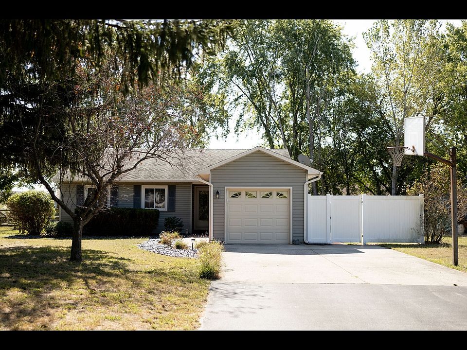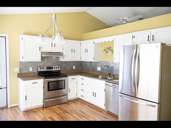 Single story ranch with vaulted ceilings. Fresh paint in living room, kitchen, and hallway. New tile in bathroom and entryway. New carpet throughout. Fully fenced in yard that's half privacy fence. Shed included Utilities not included Responsible for grass and snow removal No smoking Monthly pet fee