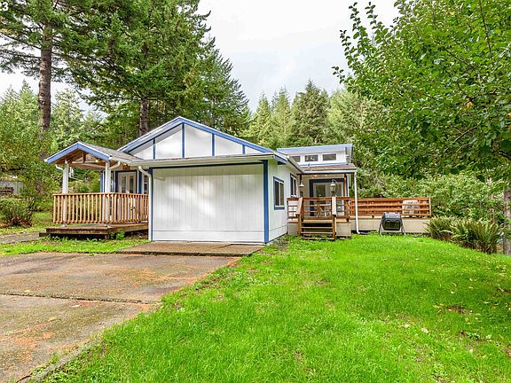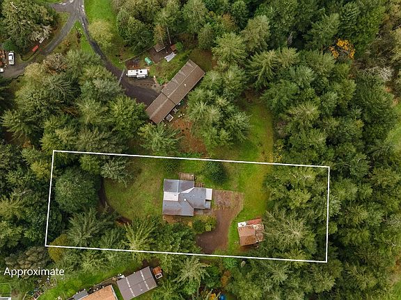 Private 0.90 Acre lot on county property with a large shop. Located just 1.5 miles outside of Coos Bay on a dead-end road. Major upgrades include New Behr Premium Plus exterior paint in 2023 and a full roof replacement in 2018! Inside the home you will find over 2000 square feet of single level living space. Plus, an open concept kitchen and family room with a wood stove to cozy up next to on those rainy days. The outside features a park-like setting with beautiful plants including Cherry, Apple, Plum, and Pear fruit trees. Enjoy the large deck overlooking the forest or playing fetch with your dog in the sizable yard space. This home provides the out of town feel with all the benefits of being close to the city.