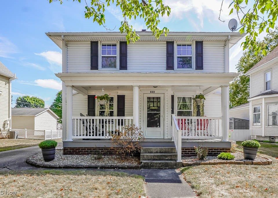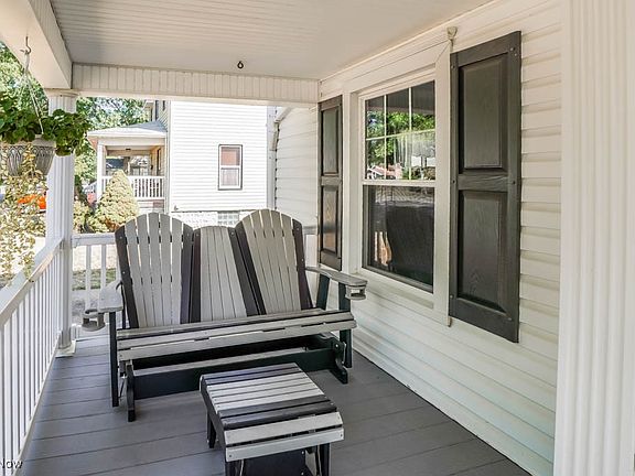 If you’re looking for a home brimming with character and updated for today’s living, this century colonial is sure to impress! A wide front porch with low maintenance vinyl railing sets the tone, perfect for enjoying morning coffee or relaxing on summer evenings. Step inside to a living room centered around a cozy fireplace with original woodwork that continues into the dining room, where hardwood floors make the space warm and welcoming. The kitchen blends vintage charm with modern convenience, featuring stainless steel appliances, classic cabinetry, and room for casual meals. Just off the kitchen, the mudroom with original built ins keeps everything organized and leads right out to the backyard.