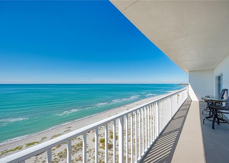 The most incredible penthouse with panoramic views of the Gulf of Mexico. Currently the only penthouse unit for sale in Venice Sands! This southwest end corner unit features a 3-sided direct Gulf front wrap around balcony. Many upgrades throughout. Move-in ready condition. Under building enclosed garage parking.