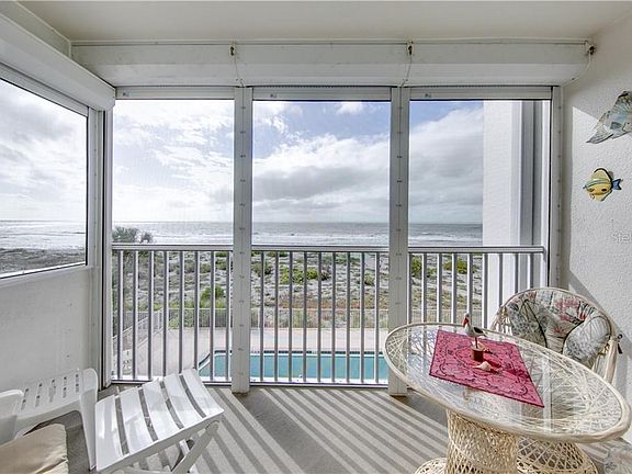 PRICE ADJUSTMENT! Looking for a condo that is ideal for enjoying panoramic views of the Gulf and the beach? This third floor unit is not too high or too low! This charming condo comes turnkey furnished and features two bedrooms and two bathrooms with Gulf views from all rooms but the guest bedroom. Both bedrooms enjoy an ensuite bathroom and walk-in closet. The convenience of your own washer and dryer inside your home is also yours here. Hurricane shutters are also a welcome feature. Living at Venice Sands means you will have a private beach as long as a football field to enjoy when you are looking for a change from your beachfront heated pool. Other amenities include a clubhouse with a full kitchen, shuffleboard, bike racks, kayak racks, and a storage closet for each unit. The community ensures security with key access to the two elevators and video surveillance. And you are a short walk to all the shopping, dining, and entertainment options that historic downtown Venice offers. Call now to schedule an appointment today to view your slice of paradise directly on the Gulf of Mexico!