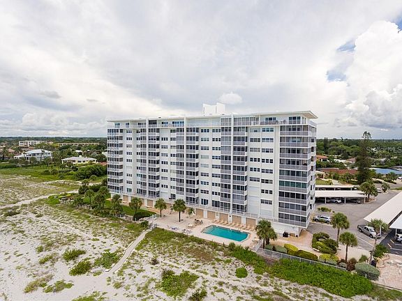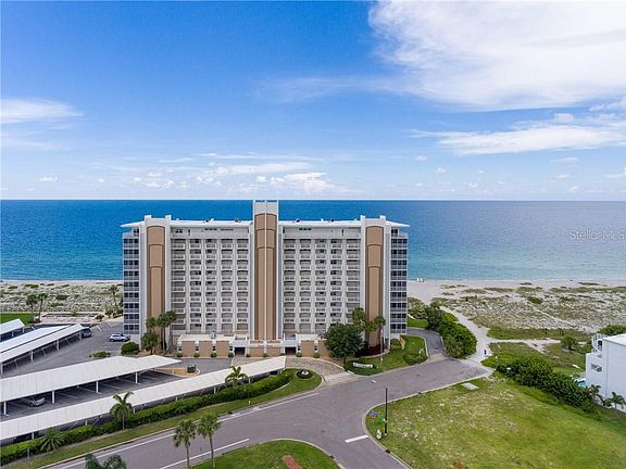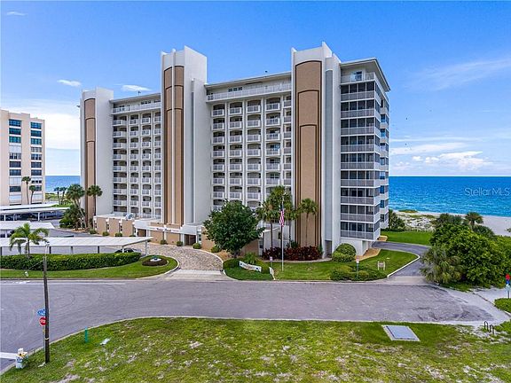 BEACH FRONT LIVING IN VENICE SANDS! Relax in this 2BD/2BA condo! Located on a private beach with magnificent views from your private screened in balcony that has just been completely updated. This unit offers a living room/dining room floor plan. Enter into your updated kitchen with solid wood cabinets, corian countertops and new stainless steel appliances. The property is being sold TURNKEY so all you need to do is bring your toothbrush. The master suite is spacious with a private bathroom, including two closets. Pocketing door to the guest suite that includes a walk-in-closet is perfect for family or friends. Crown molding and travertine flooring throughout, it really does have everything to offer for that beach front life style. The community pool is perfect to cool down and enjoy the gulf breezes. A short distance to downtown, shopping, entertainment, fine dining, schools and much more!