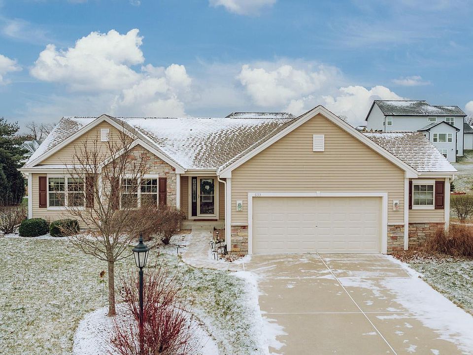 Charming and thoughtfully designed split-ranch in Mukwonago! This home features a stone-detailed gas fireplace in the great room, a spacious kitchen with granite countertops, snack bar, walk-in pantry, and all stainless steel appliances included. The sunlit dining room is perfect for gatherings, while the master suite boasts a walk-in closet and a bath with a double vanity. Wood look flooring enhances the entry, kitchen, dinette, dining room, and main hall. The basement offers potential for a fourth bedroom, additional living space, and a bathroom. Located in a sought-after school district, this home blends small-town charm with modern convenience--close to everything!