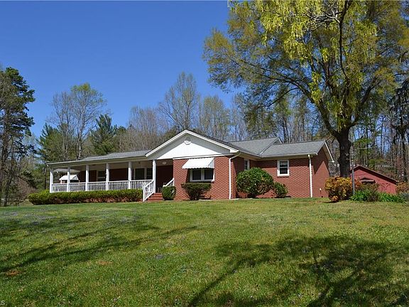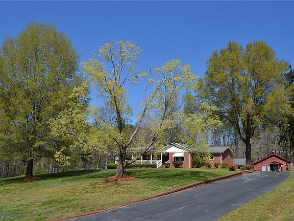 BEAUTIFUL LANDSCAPED YARD. This 3 bedroom, 1.5 bath brick home has 2.5+/- acres of land. Your friends will be jealous of the 10 ft X 40 ft covered front porch. Ideal porch to enjoy your morning coffee or Summer evenings. Spacious kitchen that needs some updating. Separate dining room with hardwood floors. Home also includes a large living room with fireplace and a Den with fireplace. Basement that has lots of possibilities. Circle paved drive, carport, 14 ft X 35 ft workshop and lots of storage. Back-up generator included. Minutes to Hwy 220 and easy commute to Greensboro. A great home for only $340,000.(TAX CARD HAD 2.5 +/- ACRES, NEW SURVEY SHOWS 2.3+/- ACRES)