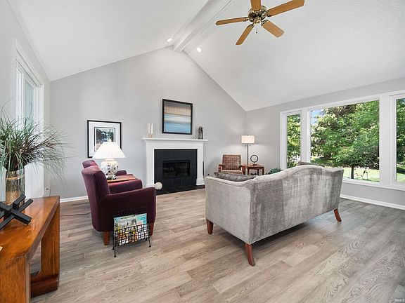 Pristine, updated Buescher built 1.5 story in Falls of Beaver Creek. So many positives to explore, you'll be happy you waited for this one. Enter the cathedral ceiling great room with ample natural light and new engineered wood flooring (2017), PLUS a marvelous Pond and natural scenic view. Enjoy meal prep in the fully remodeled kitchen (2015), with quartz counters, SS appliances, tiled floor, & large pantry. Formal dining room has hardwood flooring, could be a den if desired. You will delight in the newer sun room, (built by Zimmer 2014), which also provides a soothing view of the pond and natural landscape. Upstairs the primary suite offers a cathedral ceiling, tiled shower (2011), soaker tub, generous walk-in closet w/organizers. Second bedroom is generous & also offers a very large W/I closet. BIG daylight windows enhance the finished basement rooms; bookshelves in main room remain; second room shelves and furniture are for sale. Plumbing in place for half bath. A 22x12 storage room offers plenty of space or could be finished. Garage main space is 23x20 & there is a 14x12 extra space extending the 2d bay. Outdoors the paver patio, (17x14) provides plenty of room for entertaining. Most items remaining in home are for sale. Additional updates include new landscaping 2011 & 2012; roof shingles & furnace 2012, new washer/dryer 2013, AC 2014, new Bushey windows upper story 2015, sun room & bsmt. heat pumps 2016, new flooring main & upper levels 2017, garage interior painted 2023. Excluded: 3 ornamental grasses, 4 sedum plants, all yard art. List of all updates provided in home. Buyers and buyer agents to verify all measurements, square footage & school information are satisfactory; information shown is not guaranteed.