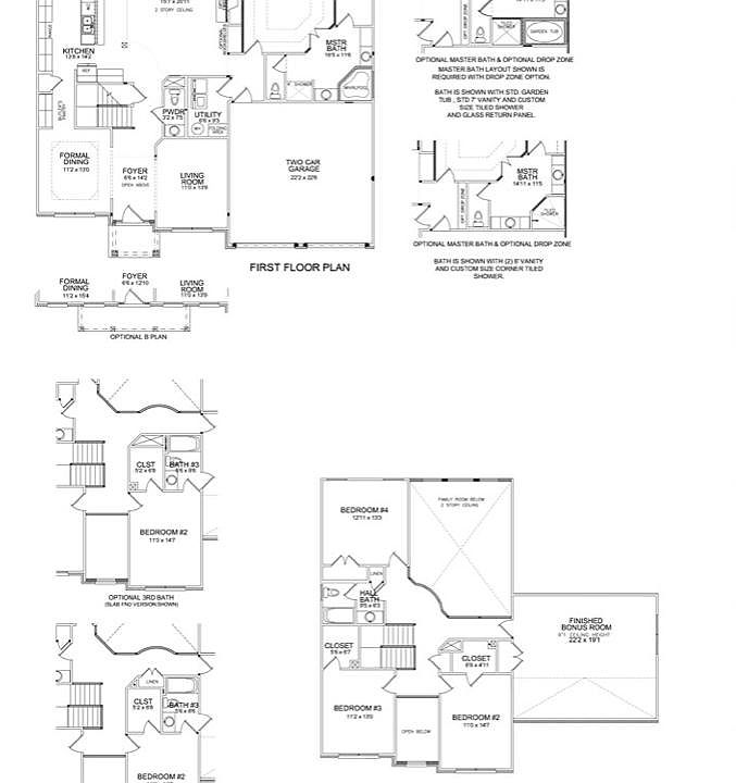 The Hartford II has a covered porch, feature entry windows, transoms and sidelights around the front door, and a detailed garage exterior with dual doors. This master on main home has formal living and dining, plus a large two story family room with abundant window, built-in bookcases and fireplace with a two-story stack stoned chase. The kitchen includes a large island with breakfast counter, and adjoins the dining room via a hallway with a built-in butler's pantry, and on the opposite end opens to the breakfast area with bay window. A luxurious master suite is located downstairs, and includes a double tray ceiling in the bedroom, and his-and-hers vanities, a corner whirlpool tub, and 4' fully tiled shower with frameless glass door.