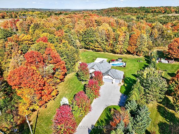 A beautiful custom-built 5-bedroom, 3-bath home with pool, 3-car garage, and private setting. Built in 2013 by Prinston Homes, this stunning residence blends quality craftsmanship with modern comfort. The kitchen showcases custom Cherry cabinetry by Cabinetree, quartz counter tops, and a bright, functional layout. The great room impresses with a 14 ft. vaulted ceiling, floor-to-ceiling stone gas fireplace, and large windows overlooking the landscaped property. The primary suite features a spa-like en-suite with heated floors, soaker tub, large glass shower, and double sinks. The walkout basement offers 9 ft. ceilings, two large bedrooms, a dedicated office, spacious rec room, and heated floors in the lower bath. Enjoy outdoor living on the covered cedar deck overlooking the 16x 34 heated saltwater pool (installed 2019 by Waterworld Pools) and beach volleyball court surrounded by perennial gardens. Additional highlights: oversized 3-car garage with 50 amp circuit (EV ready), owned tankless water heater, buried propane tank (rented from Avenir Energy, ~$100/year), forced air propane furnace, heat pump/AC, HRV, dug well with full water treatment, PEX plumbing, sump pump, 200 amp panel with 30 amp Generlink, fibre internet (Nexicom), invisible dog fence, propane hookup for future BBQ or fireplace, and a stream feeding into Baxter Creek. Septic pumped July 2025.Fantastic location1 min to Millbrook Valley Trails & MNR ponds, 4 min to downtown Millbrook, 5 min to Millbrook PS (JK6), 8 min to Ganaraska Forest, 6 min to Hwy 115, 18 min to Hwy 407, and 19 min to Peterborough. A rare combination of custom quality, privacy, and recreation in a beautiful natural setting.