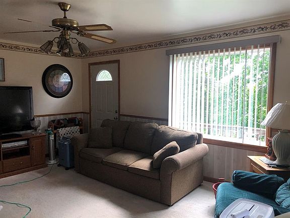 Country living yet a short drive to shopping and services. Home sits up and away from the road for you to enjoy over 5 acres of wooded & open land. You'll enter the home into the walk-out finished lower level family room, which includes propane fireplace, full bath and plenty of extra storage. The main floor has an eat-in kitchen, all appliances included. The bright living room has hardwood flooring under existing carpet, leading back to the three bedrooms and full bath. Make an appointment to see this home today!