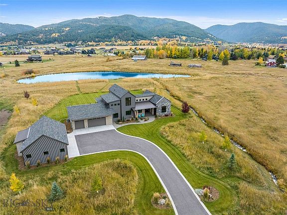 Situated in an idyllic location, just minutes away from the charming town of Bozeman, this home offers the ideal blend of convenience & tranquility, the perfect union of modern sophistication, views, versatility & timeless MT charm. Meticulously crafted to capture the very essence of luxury, this custom home is a masterpiece of design & functionality. Every facet of this residence has been thoughtfully conceived, each element serving to enhance functionality & maximize your use & enjoyment. Its design elements & architectural features reflect both elegance & a connection to the surrounding landscape. The result is a home that caters to the need for a more fulfilling lifestyle, where nature, space & comfort redefine the very concept of luxury. This residence has been meticulously crafted to enhance functionality & maximize enjoyment. From the layout of rooms to the integration of indoor & outdoor spaces, thoughtful design ensures convenience & comfort. With a SE orientation for abundant sun year-round & strategically placed shade for summer comfort, the house is designed for enjoyment in all seasons. Whether it's late summer evenings by the pond or cozy winter mornings by the fireplace, the home offers opportunities to appreciate Montana's beauty throughout the year. The property also offers versatile spaces that can adapt to various needs & preferences both for today & future needs. For example, the six garage spaces can serve as traditional parking & storage, or the 3-attached could be repurposed for indoor hobbies, entertainment, larger office space &/or additional living areas. Beyond the property itself, the Home 40 community provides fantastic amenities for residents to enjoy. Private gatherings at the clubhouse, fitness facilities, a community pool, and a 2nd pond with a sandy beach offer opportunities for recreation & relaxation. As a year-round sanctuary, this home is more than just a residence—it's a legacy property. Its exceptional design, stunning views, and versatile features make it a place where generations can create cherished memories & appreciate the enduring beauty of Montana. Overall, the versatility of this house lies in its ability to cater to diverse lifestyles & preferences while offering a luxurious & harmonious living experience amidst the natural splendor of Montana, with Bozeman's shopping, restaurants, university, hospital & airport are all within easy reach, ensuring all the necessities at your fingertips.