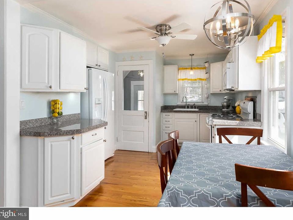 This absolutely adorable 2-3 bedroom bungalow has been loving updated and shows with pride! The open floor living between the living room and kitchen allow for day to day family living as well as entertaining. The kitchen has been updated with newer cabinets, counter tops, appliances and lighting. Gleaming hardwood flooring in the kitchen and living room. The entire home is freshly painted throughout. Upstairs is a special surprise! Use the large second floor as either a third bedroom or a play area! Newer deck and New roof (2015).