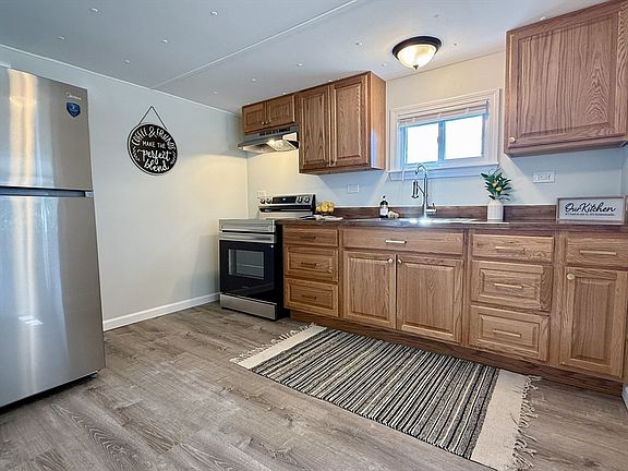 FOR SALE - Quiet and spacious two-bedroom home located in a premier 55+ Adult Community (Oakwood Estates). Dogs and cats lovingly welcomed. Beautiful new eat-in oak kitchen, with butcher block countertop and all new stainless-steel appliances. Large, renovated bathroom with walk-in shower unit and W/D hookup. Freshly painted, vinyl tilt-in windows and new hardwood flooring throughout this one level, spacious home. New efficient heat and A/C mini split. Two decks (front & rear) with a covered roof. Private, individual concrete driveway overlooks yard for gardening or outdoor entertainment. Low monthly park fee includes: water, sewer, all taxes, trash removal and plowing of roadways. Convenient and easy access to major routes, all shopping, dining, movies and entertainment. This newly renovated home is in move-in condition. Vacant, move-in ready, very easy to show. On lockbox. No appointment is needed. Call Today! See it Today!