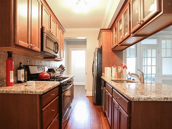 Come take a look at this classic DC rowhouse that has been recently renovated from top to bottom. This spacious 1,968 sq ft home is perfectly situated on a tree lined street in Petworth. Walking into the home, you will immediately notice the amount of natural light that enters the bright and airy space. The kitchen in the rear of the house opens into the dining and family room and comes complete with cherry wood cabinets and stainless steel appliances. There is also plenty of counter space for all of your cooking needs. The pristine hardwood floors throughout the home, Nest thermostat, modern recessed lighting, and granite counter tops add to the luxury feel of this townhouse. It also has a finished basement with plenty of additional storage space. Washer and dryer are included in located in the property. You will love the private yard and a patio area, which are perfect for entertaining during the Summer months. This townhouse is conveniently located within walking distance to the Green Line - Georgia Ave/Petworth metro, Transit Stops 62, 63, 70, 79, & Petworth Safeway. It is surrounded by plenty of restaurants. Some of our favorites along the Upshur St Corridor include: highly rated Himitsu, Timber Pizza Company, Hank's Cocktail Bar, and Petworth Citizen. Safeway and the weekly Petworth Farmer's Market also are not far away. 633 Emerson St NW, Washington, DC 20011