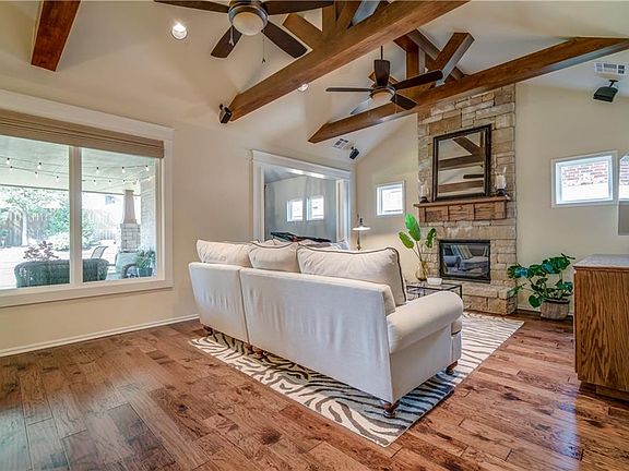 Perfect floorplan in the best location in Edmond! 4 beds (3 dn/ 1 up) (upstairs could be bonus+full bath) & a downstairs flex room (study/toyroom/piano room). Right off I-35 & 2nd w easy commute to OKC & Edmond. Relax on your huge front porch (with a swing) w views of the landscaped community park & adorable lending library. Entertain in your backyard backing to wooded greenbelt, lg covered patio & tons of privacy. Huge windows provide amazing natural light in living room, kitchen and sunroom/breakfast room (large enough for formal dining table). This McCaleb Homes London open floorplan has a kitchen open to the vaulted living room but still provides privacy from the front door. Save over $100,000 with this home versus building the same new! Tons of upgrades including wood beams, stone fireplace, hdwd floors, granite, double convection SS oven, gas stove, wainscotting, extra trimwork, & extended back porch plus a structural warranty. Don't miss this home - A tremendous value!