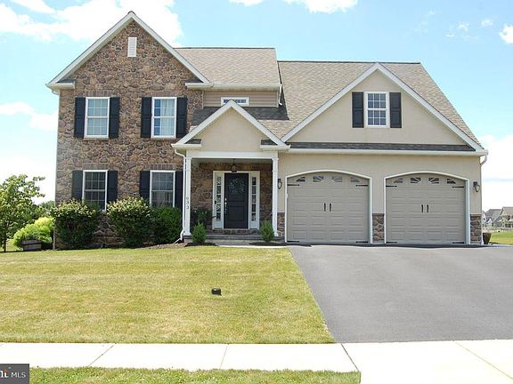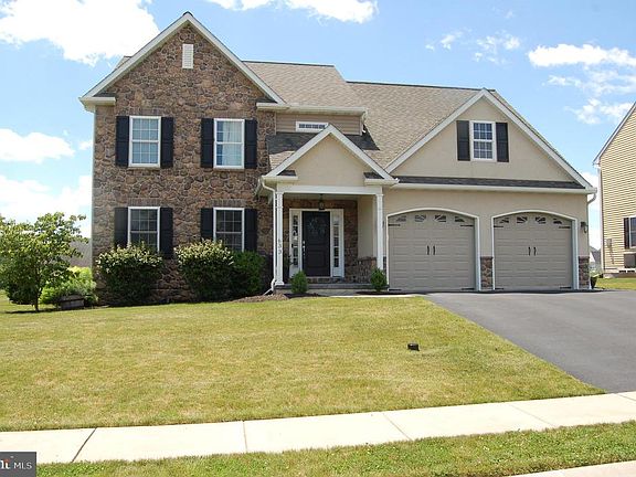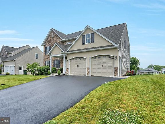 Spacious custom-built open concept floor plan home featuring a granite kitchen, cabinets stretching up to the ceiling, hardwood floors, oversized luxury master bath with double vanity and large tile walk in shower. The finished basement boasts a custom built in wet bar, full bath, & hook ups for a projector in a dedicated theatre room that could also be an office, workout room, etc. Backing to amish farmland the stamped concrete patio with built in pergola has a built in grill and entry/exit to the finished basement.