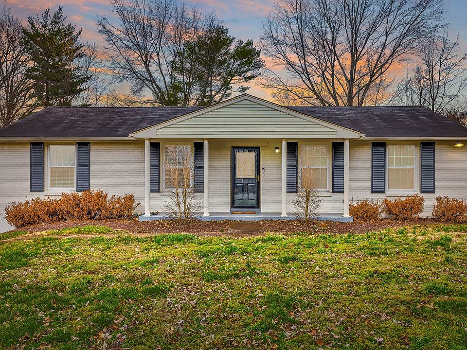 Conveniently located in Nashville, this charming ranch has 3 bedrooms, 2 bathrooms, and a full basement. The curb appeal has been improved with white brick and landscaping. Upon entry, you’re greeted with the cozy living room, dining room, and kitchen with stainless steel appliances. Down the hall are all 3 bedrooms and a guest bathroom. The master suite at the end of the hall features an en suite bathroom with a fully renovated shower, vanity, and new fixtures. The basement boasts ample room, including a flex area, attached 2-car garage, and tons of storage. A deck off the kitchen is great for summer entertaining and overlooks the yard of mature trees that enclose the property. The home had all windows replaced in 2020 and is in great condition to become your next home!
