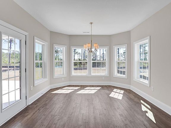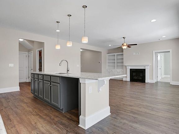 The Calabash 1.5 story floor plan. This home has just been completed! Indigo bay is a 330 home site community, gated, and has natural gas. Conveniently located to shopping, schools, library and recreation center. Indigo Bay is situated around a 56 acre lake. Half the homes are on the lake front, the balance on trees/preserves. The huge amenity center is now complete with low HOA dues. Indigo Bay has a 9 foot recreation path which will continue around the neighborhood. Small parks will be placed around the lake with swings for you to stop and relax during your evening walk. This home has 3 bedrooms, 3 baths and study. Each of the 3 bedrooms has it's own bathroom. A large foyer will greet your guests and lead them into the open concept family room, kitchen and casual dining area. Also off the foyer is a study with large walk in closet, trey ceiling and french doors. Your second bedroom is also on the first floor and has its own hall and bath for privacy. The laundry room with its white cabinets and folding table also have easy access to the garage. There is a separate walk in over sized pantry measuring 7'10" X 4'10". The casual dining area has a gorgeous bay window which over looks your landscaped yard with a view of mature trees. The wide open great room has a gas fireplace and built in book shelves. Three pendant lights hang over the large kitchen island which could seat 6 and the countertops are an upgraded quartz.You will have a single bowl sink and stainless steel appliances, white cabinets with upgraded knobs and pulls, gas line, USB port, and tiled backsplash.The Master bedroom is large and spacious and connects to the master bath which has a large walk in shower with floor to ceiling tile and 2 shower heads and bench seat. It even has a drying area. The double sink vanity is made of quartz and has brushed nickel hardware. A private water closet for your toilet, a linen closet and large walk in closet complete this on suite. The wood tread staircase will take you up to the 3rd bedroom (or bonus) and bath. Walk out storage with full size door is also on the 2nd floor. All of the homes in Indigo bay are built to our ecoSelect standards which include 2X6 exterior walls, R19 insulation, radiant barrier in the attic, upgraded HVAC trane system in a 16 seer. Low e windows and other energy saving features. Picture are of the actual home.