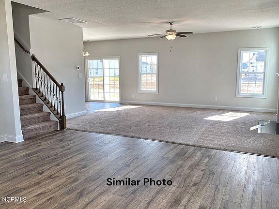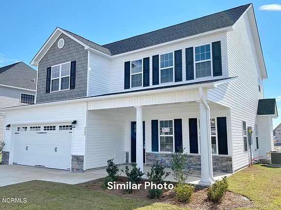 Welcome to the highly desired & popular community of Onslow Bay. Brand new construction built by Onslow County's most trusted & preferred builder, featured in Builder 100/ Top 200 Builders in the country. Onslow Bay is a hot spot, 3 miles to MCB Camp Lejeune's Piney Green gate, 14 miles to New River Air Station & minutes to area schools, shopping & dining. This beautiful neighborhood is sure to impress, complete with a clubhouse area & community pool. Welcome to the Marvin! 4 Bedroom/2.5-bathroom, approx. 2229 heated square feet. This home has great curb appeal with a nice sized front porch and a clean, classic landscape. Very open floor plan and great for entertaining. The kitchen is a dream! 11 x 16 open to a 9 x 12 breakfast nook. Kitchen boasts lots of cabinets complete with an island for extra counter space. Stainless appliances include a smooth top range, dishwasher, and microwave. Kitchen is complete with a walk-in pantry! The kitchen is open to the 18 x 16 family room. Family room accented by a beautiful fireplace and ceiling fan. All bedrooms are on the second floor. The master bedroom is spacious - 15 x 16 with a walk in closet and sure to please any homeowner. Master bath to include a double vanity topped with a custom mirror, separate tub, and shower. Separate laundry room also on second floor. This charming plan also has an open patio and 2-car garage. Call today! NOTE: Floor plan renderings are similar and solely representational. Measurements, elevations, and specs may vary in final construction. Limited selections for buyer to choose. Call L/A to verify.
