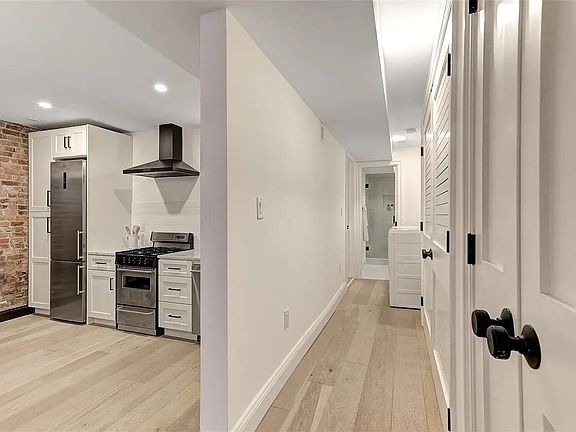 Discover your new home in this beautifully renovated garden-level apartment at 633 Jersey Avenue in Jersey City. This one-bedroom, one-bathroom unit is located in a classic brownstone and offers a perfect blend of historic charm and modern amenities. Step inside to find a welcoming living space with exposed brick, adding a touch of rustic elegance. The apartment features a sleek and stylish kitchen equipped with white shaker cabinets, a subway tile backsplash, and stainless steel appliances. The spacious bedroom provides a serene retreat with two closets featuring custom built-ins, offering ample storage. The bathroom is equally impressive with a glass-enclosed shower and modern fixtures. For added convenience, the unit includes an in-unit washer and dryer and plenty of additional storage space throughout. Situated in a prime location, this apartment offers easy access to all that Jersey City has to offer. Don't miss the opportunity to live in this fantastic space! Parking available nearby for an additional fee.