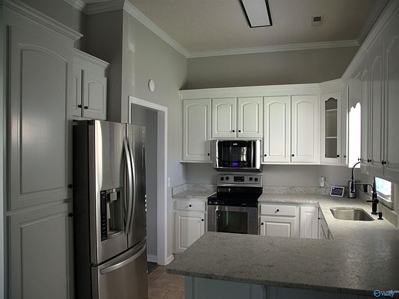 Classic 2-Story home in Harvest with surprising open/spacious interior! This fine home is situated on a full acre level lot with privacy fenced backyard! 4 car garages w 2-attached and 2-detached used as shop in back with 100 AMP power. Home has a flexible living plan with a Keeping room behind breakfast area so nice for quiet after dinner relaxing! GR has wood burning FP. Front room could be formal dining with sunny south facing windows! Great for plants! Master bedroom on main floor; 2 bedrooms up plus a bonus room for overflow company or hobby room! Lovely remodeled baths & kitchen! Bedrooms have new carpet plus new paint in entire home! 20 minutes to Huntsville/Madison! Farm/open views!