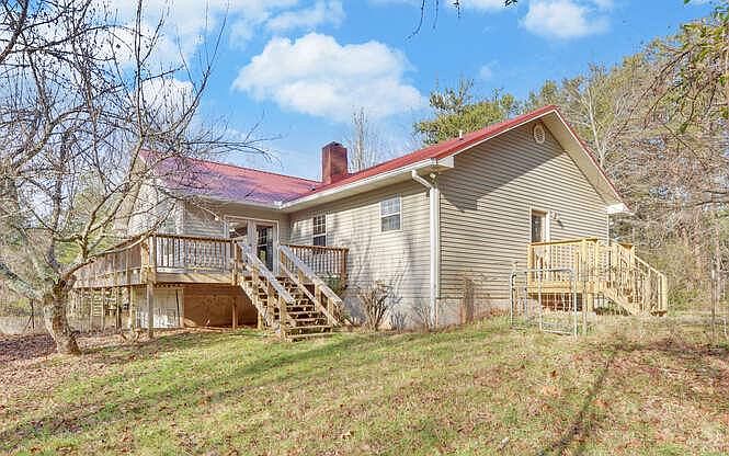 WOW! WOW! WOW! Total PRIVACY from this 4BR/2BA updated home sitting on 30.6 acres of unrestricted land bordering 400 acres of forest service land and only a short walk through the USFS to Lake Nottely. Fast flowing year round creek running through property & approx 10 acres of pasture partially fenced. Views of the N. Ga. Mtns from the large front porch. Home has farm style kitchen w/new stainless, steel appliances. Stay warm on cold nights w/wood burning stove. Master has large walk in closet. New whole house filtration system, unfin. basement stubbed for bath for more living space, new metal roof, & other updates. Potential farm land, horses, cattle, development, or anything you can dream. Paved road close to town. Has it all30.6 ACRES, MOUNTAIN VIEWS, CREEK, BORDERS USFS WITH ACCESS TO LAKE!