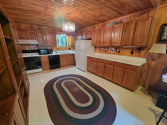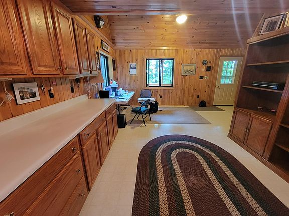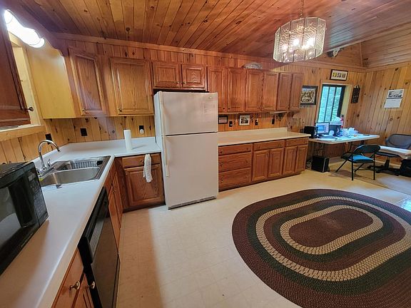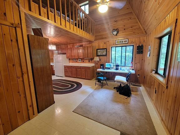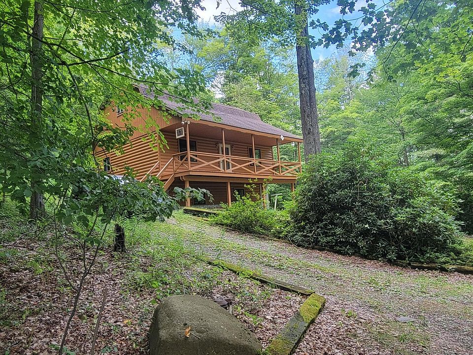 Your log cabin in the woods awaits! Well maintained year round home on 6.76 wooded acres. Large kitchen/dining space with pantry, main level primary bedroom, full bath with laundry. Second floor has 2 sizeable open rooms and cathedral ceilings. Entertain and enjoy the outdoors from main level 7'6 X 32' covered deck! Full basement great for hobbies and storage. 2 car garage by the road.