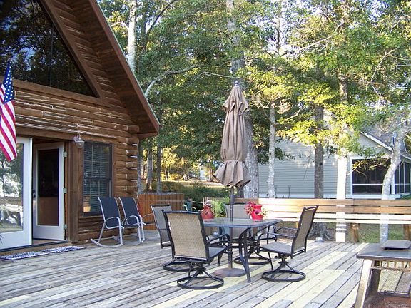 Custom built log home, with many extras , soft close drawers, tile back splash. Large 3-Plus metal car-port with attached RV Storage with hook ups also have very nice almost 1000 square foot back deck with sunsetter electric awning overlooking a spectacular view of lake Eufaula.