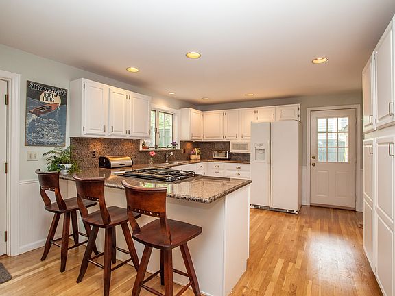 Enjoy harbor views and spectacular sunsets from the first and second floor porches of this Milton Point treasure. Rebuilt in 1989 and recently updated, this delightful home exudes the feeling of a Nantucket sea captains cottage. A living room with a fireplace opens into a dine-in kitchen with granite counters and back splash. French doors open out to a flagstone terrace. The private fenced in backyard features a second terrace with a pergola, custom lighting, specimen plantings and a storage shed. The master bedroom has a cathedral ceiling, doors to porch, & en-suite bath with radiant heat, granite counter & subway tile. Near Milton Elementary, marina & shops.