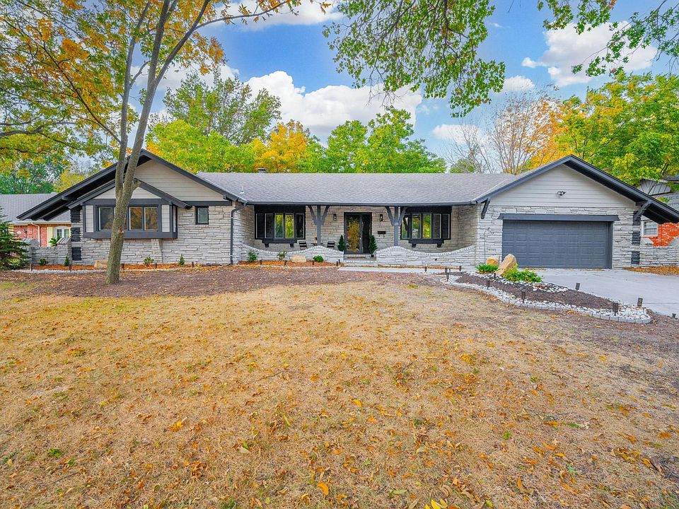 Welcome to this gorgeous mid-century home, beautifully updated to blend modern elegance with classic charm. Spanning over 3,500 square feet on a generous third-acre lot, this residence boasts stunning curb appeal with its striking brick and stone exterior, highlighted by an expansive front porch flanked by curved stone walls, perfect for enjoying your morning coffee. Step inside to discover beautiful new hardwood and luxury vinyl flooring throughout, complemented by exquisite details such as crown molding in the front living room and dining room. This home features not one, but two inviting living rooms; the family room showcases vaulted beamed ceilings, a cozy fireplace with a floor-to-ceiling stone surround and a built-in shelf, and charming bead boarding. The family room also includes a kitchenette area, ideal for a coffee station. Enter the well-appointed kitchen, where you’ll find ample space for cooking or baking for a crowd, sleek countertops paired with stylish subway tile backsplash, a wall oven, abundant cabinet space, extra storage, and a lovely adjoining dining alcove with built-in bench seating. The spacious master bedroom offers double closets and an en suite bath with a tiled walk-in shower featuring a rain head and an updated vanity. Additionally, there are three more bedrooms and two more baths on the main floor, including a fully updated main bathroom with new fixtures and a quartz double vanity. For convenience, the main floor laundry room includes a wash sink and plenty of cabinet space for storage. Venture downstairs to find a family/recreation room with a dry bar, perfect for hosting game nights with friends or family. An adjacent space with built-in shelves offers versatility for use as a playroom or whatever suits your needs. This home provides more than enough space for everyone to spread out comfortably. Outside, enjoy the expansive, fully-fenced backyard featuring a patio, shade trees, and plenty of room for all your outdoor activities. Located close to a wealth of east side amenities including shopping, dining, and entertainment, with easy highway access, this home is a must-see. Schedule your private showing today and experience all it has to offer before it’s gone!
