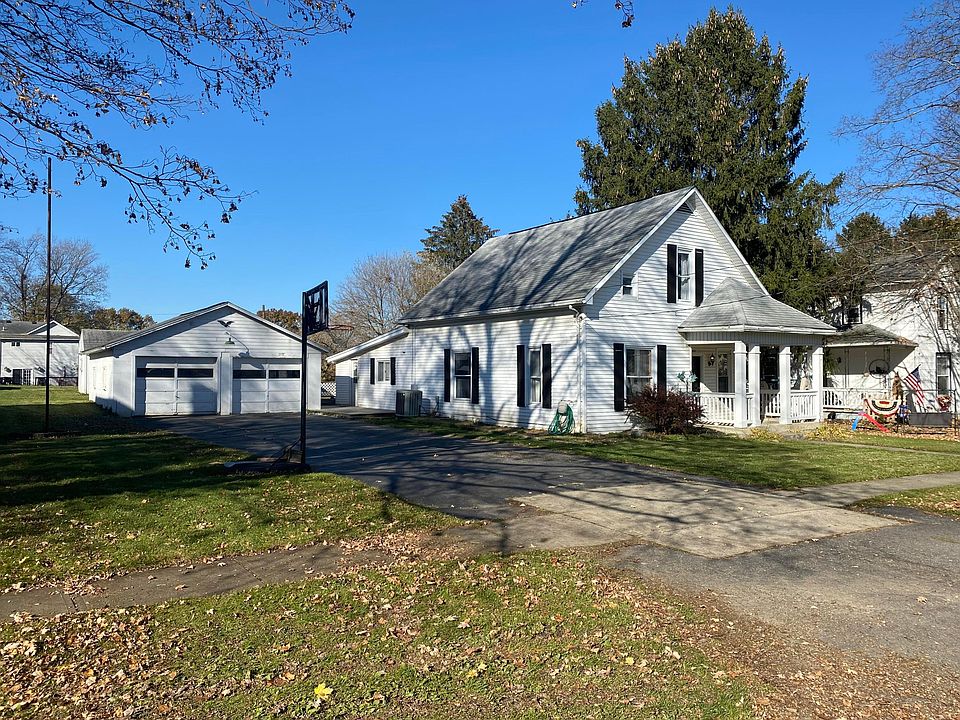 Charming cottage in the village of Utica. 3 bed/ 1 bath with large eat-in kitchen, dining room, living room and two car garage. This home is situated on a double lot with a large back deck for entertaining. This home is being sold as is.