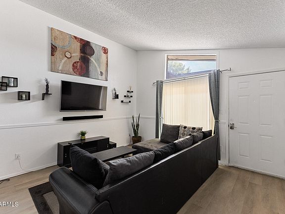 Fall in love with this beautifully remodeled townhome in a prime location near Sloan Park, ASU, Riverview, and Tempe Marketplace. Inside, you'll find neutral laminate wood floors, crisp white kitchen cabinets, and sleek black appliances for a modern, sophisticated look. The spa-inspired bathroom offers a relaxing retreat, while vaulted ceilings and ceiling fans keep the home bright and cool. Step outside to your private fenced patio—spacious enough for entertaining family and friends or simply enjoying a resort-like escape. This home is currently leased so perfect for investors or future owner occupants.