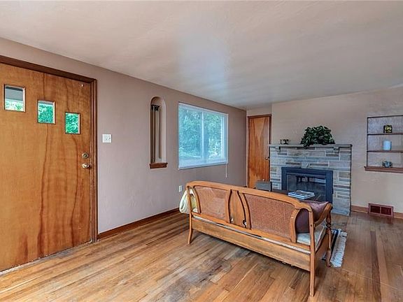 THIS COZY RANCH HOME OFFERS ONE LEVEL LIVING. THERE IS A COVERED FRONT PORCH WHICH LEADS TO THE LIVING ROOM WITH A WOKING STONE, LOG FIREPLACE. THE DINING ROOM IS JUST OFF THE EQUIPPED KITCHEN WHICH HAS A BREAKFAST BAR OR IT IS LARGE ENOUGH FOR A SMALL BREAKFAST SET AND THERE IS A COVERED PORCH OFF THE KITCHEN. YOU CAN SIT THERE IN THE WARM MONTHS WITH MORNING COFFEE OR TEA AND ENJOY THE VIEW WITH THE WILDLIFE. THE PORCH HAS STEPS WHICH LEAD TO A SMALL PATIO - GREAT FOR COOKOUTS! THERE ARE HARDWOOD FLOORS THROUGHOUT. THE BASEMENT IS LARGE AND HAS THE WASHER AND DRYER. THERE IS THE ENTRY TO THE GARAGE WHICH IS LARGE ENOUGH TO HAVE A WORKSHOP BENCH IN THE FRONT OF IT.